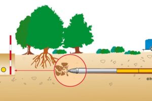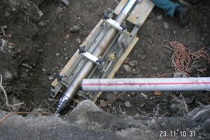 Der Rohrvortrieb mit einer pneumatisch angetriebenen Erdrakete verdrängt das Erdreich. Damit werden Kunststoffrohre (Hüllrohre) mit einem Durchmesser bis 125 mm eingezogen. Die maximale Bohrlänge beträgt je nach Bodenbeschaffenheit bis 20 Meter. Sie überzeugt durch eine unkomplizierte Installation und einer einfachen Handhabung. So lassen sich kostengünstig grabenlose Strassen kreuzen und Hausanschlüsse herstellen.
