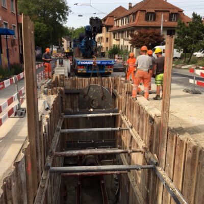 Jetzt gehts Los! Zürich, Uetlibergstrasse: Rammvortrieb DN 2000, Länge 18 Meter.
