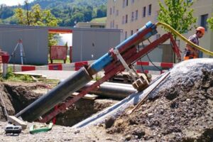 Vertikal wird die Rammtechnik z.B. für Baugrubensicherungen, Fundamente oder Schachtabtiefungen genutzt.